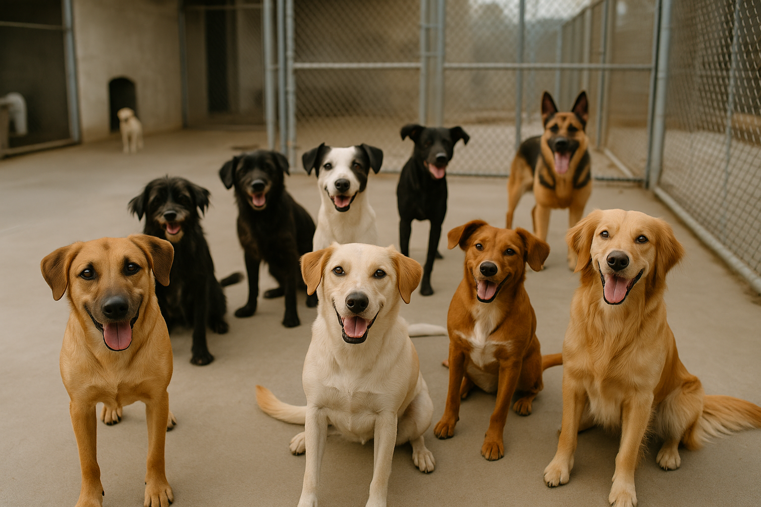 Five years later, Milan is one of our happiest residents — healthy, playful, and always the first to welcome new dogs into the shelter.